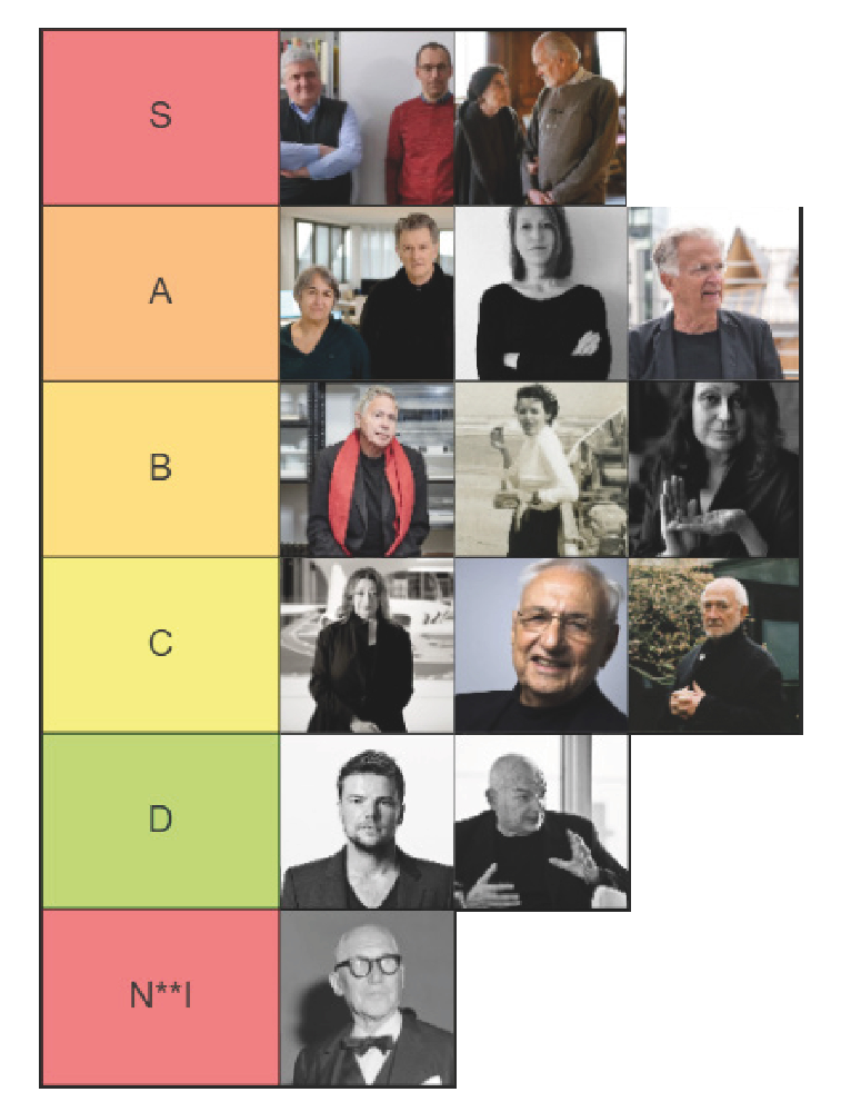 Selon Azar toujours, on pourrait aussi attribuer deux autres rôles dans l’environnement architectural. Le rôle de Flibustier, “l’artiste qui oeuvre à partir de son domaine à l’encontre de l’architecture”*. Et le Boucanier celui qui pratique le cabotage le long des côtes de l’architecture. Dans le dernier se retrouve par exemple le travail de collectif artiste/designer ou scénographe.